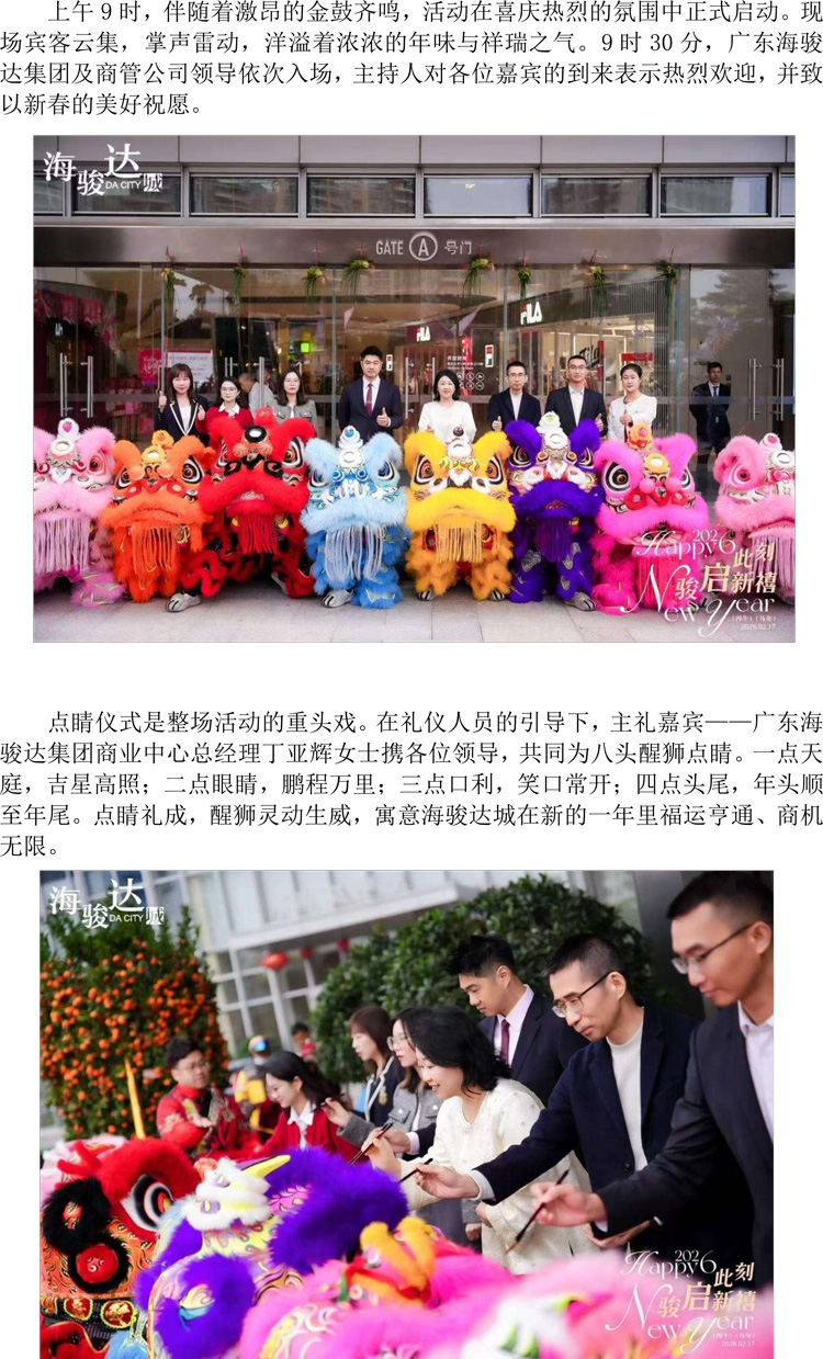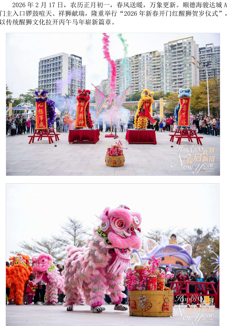 順德海駿達城2026年新春開門紅醒獅賀歲儀式圓滿舉行
