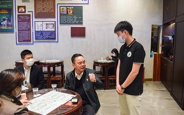進(jìn)店后分桌而坐,主動摘下口罩帶頭進(jìn)行堂食消費,品嘗雙皮奶、姜撞奶等特色美食,以實際行動支持餐飲行業(yè)經(jīng)營發(fā)展,鼓勵市民放心消費。還積極詢問商家復(fù)工經(jīng)營情況,并現(xiàn)場協(xié)調(diào)解決。